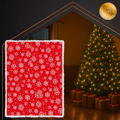 The red-and-white design pairs beautifully with holiday decor, and thanks to its resistance to wrinkling and pilling, the throw keeps its elegant look for a long time. Delivered with a gift satin ribbon—ready to delight as a present.