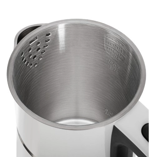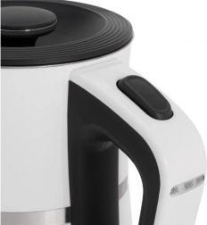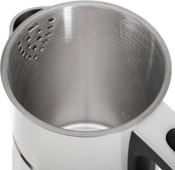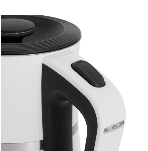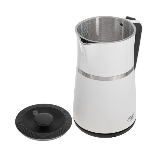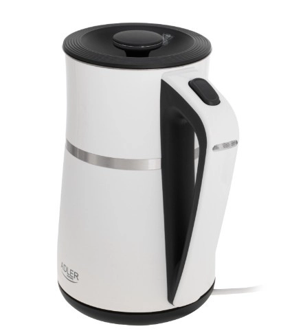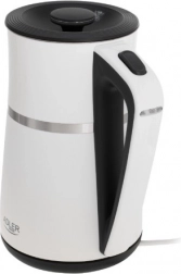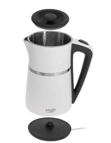 The ADLER AD 1355 kettle offers quick water boiling, quiet operation, and safe use thanks to its double-wall construction. The stainless steel interior guarantees a clean water taste and easy maintenance, while the flat heating element speeds up heating and makes limescale cleaning easier.
