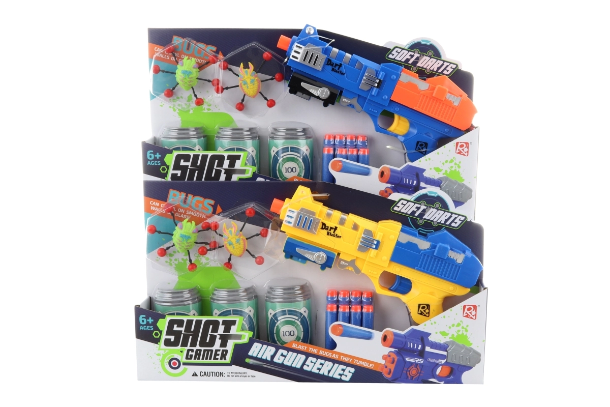 • Complete set – gun, 8 darts, 3 targets, and 2 sticky bugs.