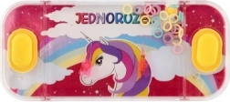 A fun pocket game for kids that trains patience and focus. Use two buttons to set the rings in the water in motion and try to place them onto small pegs. Lightweight, portable, and with a cute unicorn theme – ideal for travel and waiting rooms.