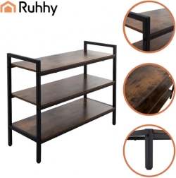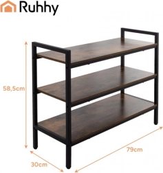 The practical RUHHY shoe rack in a loft style combines functionality, stability, and an elegant look. Three sturdy shelves with a load capacity of 30 kg each hold shoes for the whole family, while the durable metal frame and wooden shelves in a warm tone add a modern touch to your interior. Compact dimensions of 79 × 30 × 58.5 cm save space, and protective feet prevent floor scratches.
