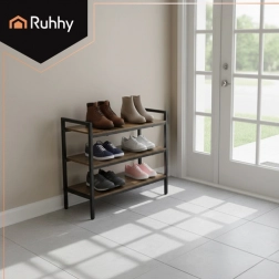 RUHHY Shoe Rack 3-Tier Metal Organizer with Wooden Shelves, 30 kg per shelf, 79 cm