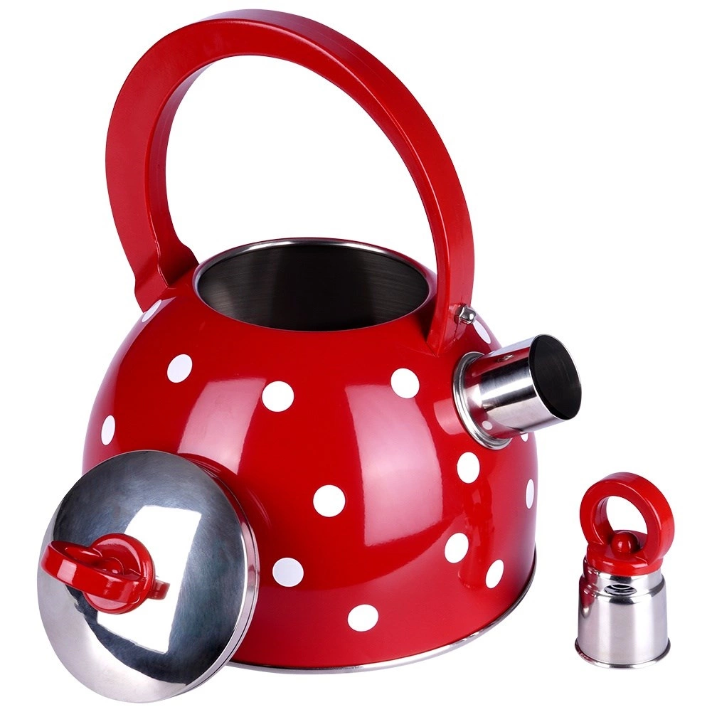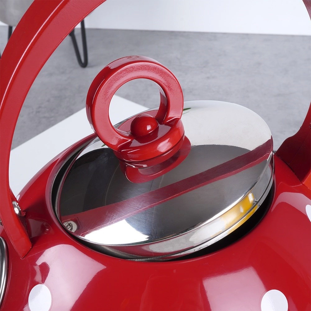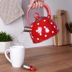 The red finish with white polka dots turns everyday water boiling into a joy and adds unique charm to your kitchen.