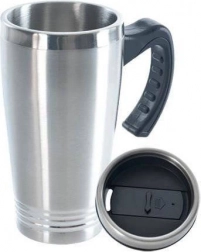 A practical steel thermal mug with a handle and a 450 ml capacity keeps your drink hot or cold for a long time. Thanks to the double-wall vacuum insulation and a sealing lid, it’s ideal for travel, work, and home. It fits most car cup holders, and the comfortable ergonomic handle ensures a secure grip.