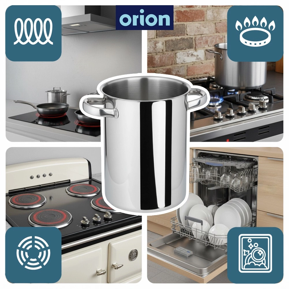 The multi-layer acute-thermal base heats up quickly, distributes heat evenly, and saves energy. The pot is suitable for all types of stovetops including induction and is dishwasher safe. Also perfect for cooking ham in a ham maker or braising meat in the pot.