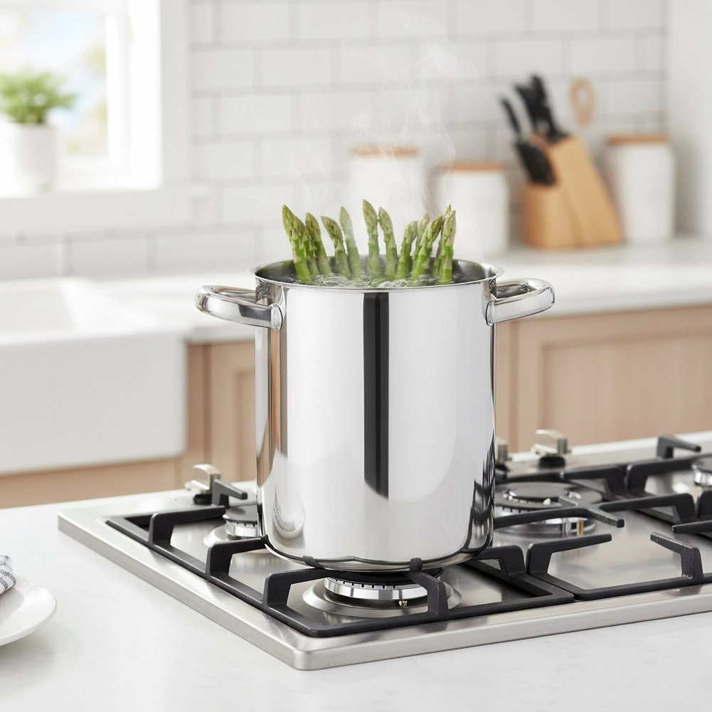 The tall body is perfect for cooking asparagus, spaghetti, and other long foods without breaking.