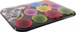 The rectangular muffin pan with 12 silicone cups is ideal for everyday baking. The metal part has a non-stick coating for easy release and cleaning, while the silicone cups in various colors are lightweight, flexible, and create a beautiful fluted edge on each piece. Suitable for sweet muffins, mini cakes, and savory bites.