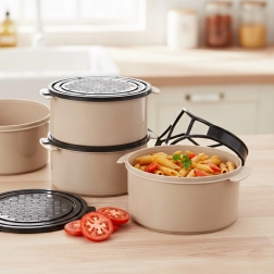 • Easy maintenance – dishwasher-safe; microwave without lids.