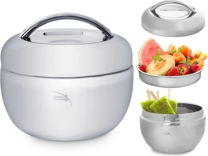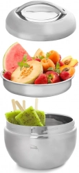 Enjoy hot lunches and cold desserts anytime, anywhere. This thermal food carrier made of high-quality stainless steel has a smooth surface for easy cleaning and a practical inner bowl for serving sides or snacks. The lid with an integrated handle ensures comfortable carrying.