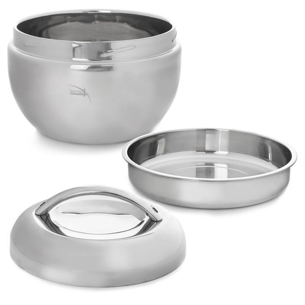A practical 2 L stainless steel thermal food carrier keeps your meals warm or cold for longer. It consists of a main bowl, an inner bowl/plate, and a lid with a comfortable handle. Thanks to its quality craftsmanship, it is durable, easy to carry, and maintains temperature for up to 2 hours. Ideal for work, travel, and home serving.