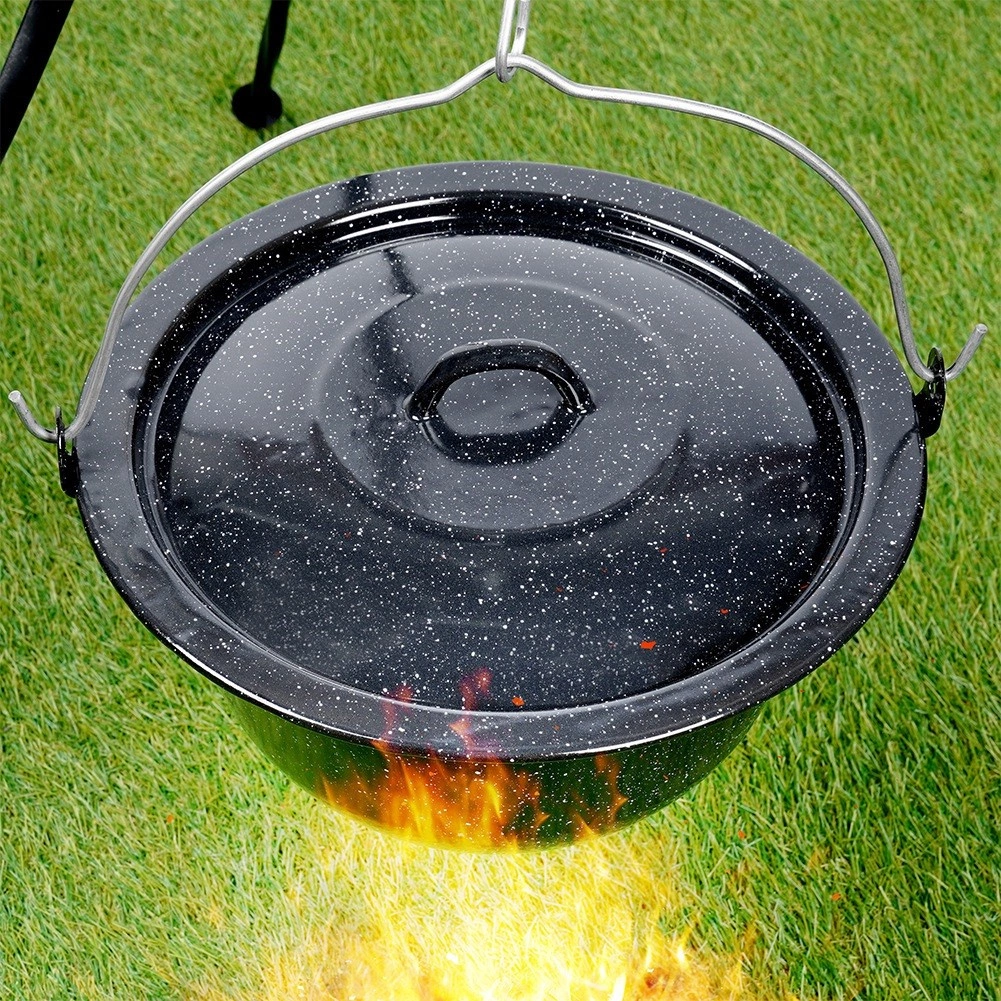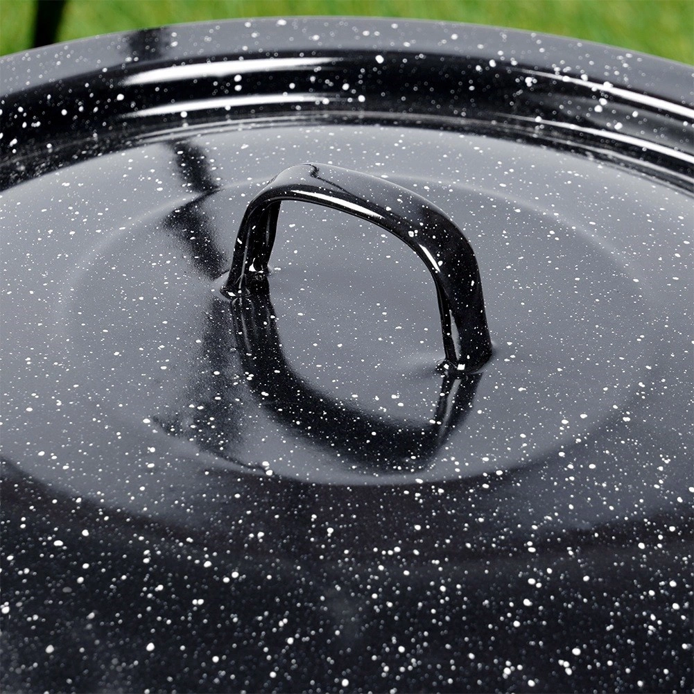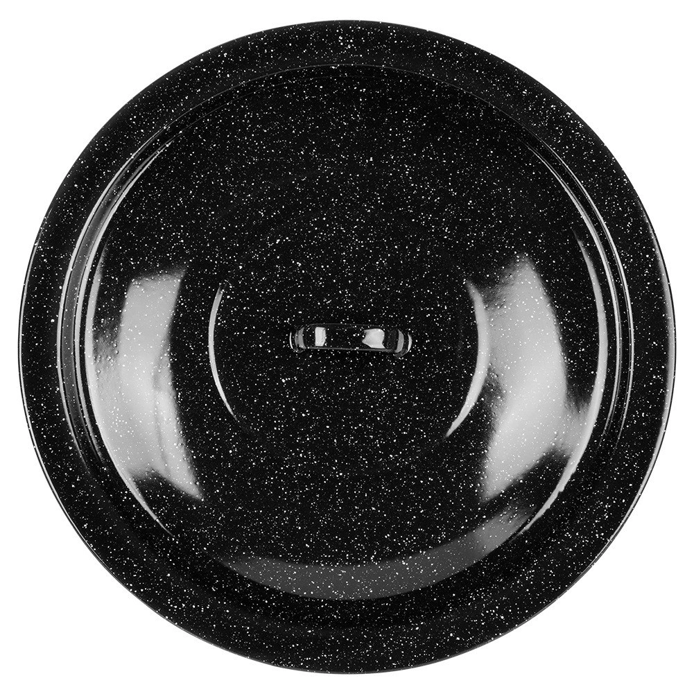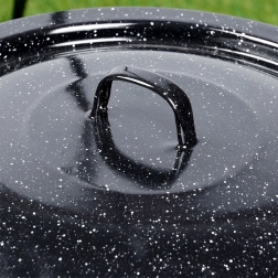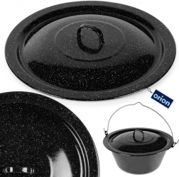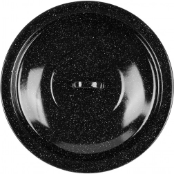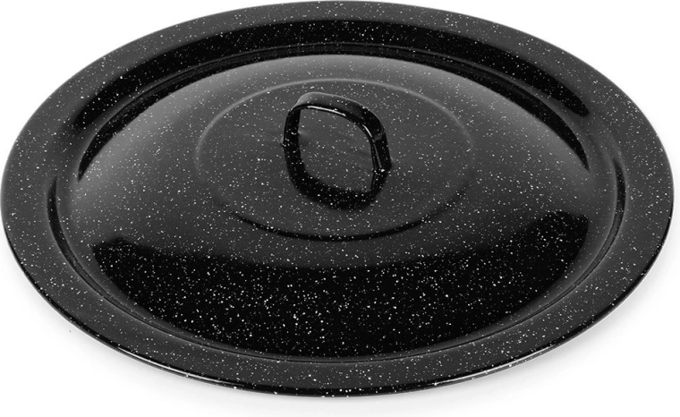 A robust lid made of black-speckled enamelled steel, ideal for cooking outdoors or in the garden. It retains heat and moisture in the cauldron, speeds up boiling, and enhances the flavour of soups, goulashes, and stews. Suitable for Hungarian cauldrons with a capacity of 13 l (40 cm diameter).