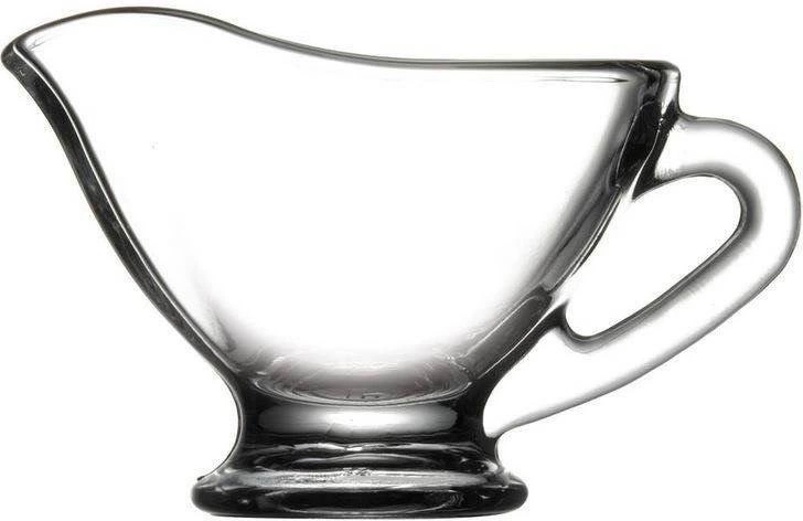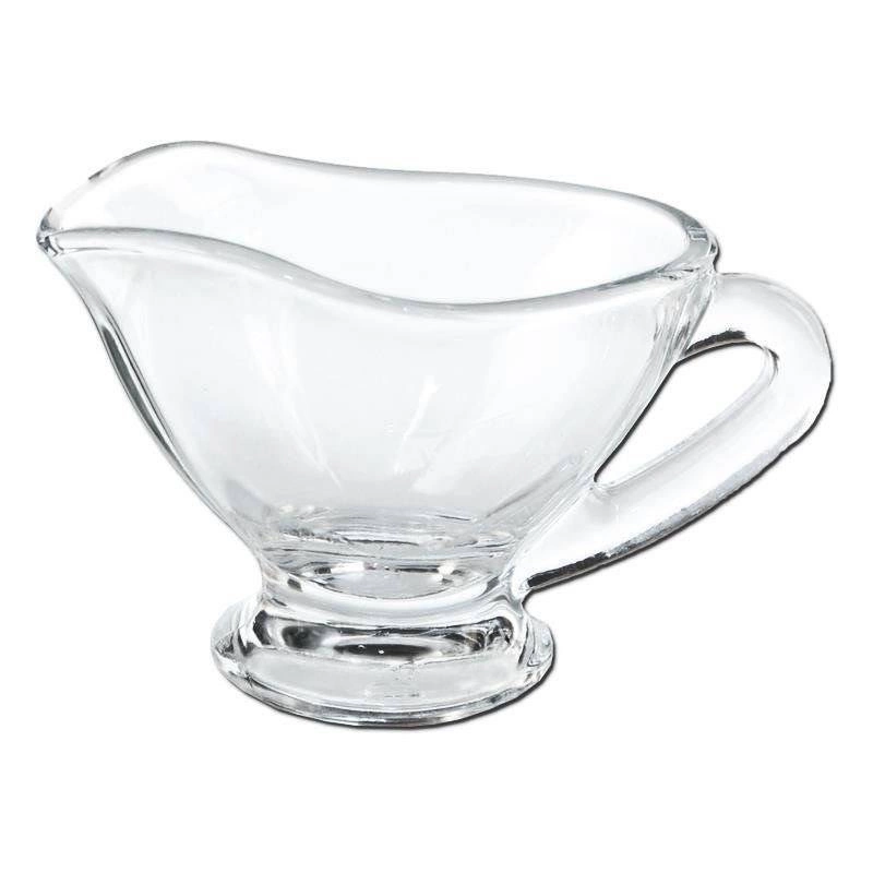 A practical 50 ml glass gravy jug ideal for serving sauces, mustard, ketchup, and coffee cream. It has a comfortable handle, a practical spout, and a classic design that matches any tableware set. Made from quality glass and dishwasher safe.