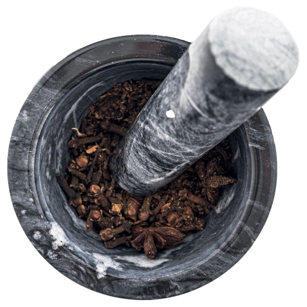 The inner unpolished surface of the bowl and the bottom of the pestle provide perfect friction. Easily brings out the fragrance of spices and herbs and releases essential oils.