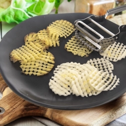 Create even slices and crisscrossed “waffle” cuts for attractive plating and extra crispiness when baking.