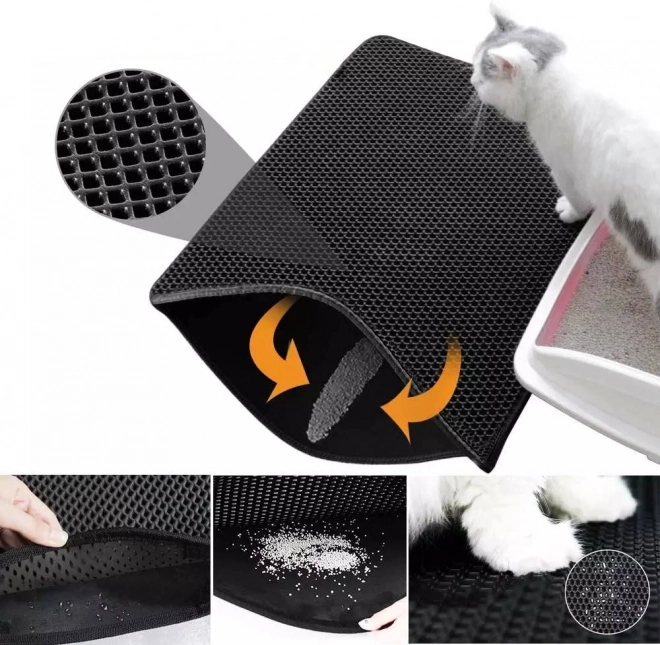 This mat is made of high-quality EVA foam, giving it high durability, water resistance, and easy maintenance. Simply lift the top layer and pour the litter out.
