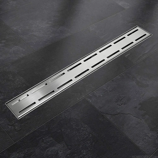 Elegant 150 cm linear shower drain made of stainless steel with a low-profile trap for modern barrier-free showers. Offers high corrosion resistance, easy maintenance, and reliable drainage. With adjustable feet and a sealing collar, it installs easily and ensures long service life.