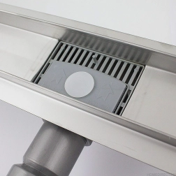 Thanks to the removable debris cup/basket and protective grate, cleaning is quick and convenient. Adjustable feet make it easy to level flush with the floor, and the sealing membrane (waterproofing collar) ensures reliable watertightness.
