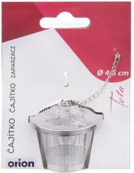 Practical steel infuser for loose tea and herbs, 4.5 cm in diameter, with a hanging chain and hook. Made of high-quality stainless steel, dishwasher safe. Fine mesh catches all leaves and secure closure prevents spills. Universal use for mugs, glasses, and teapots.