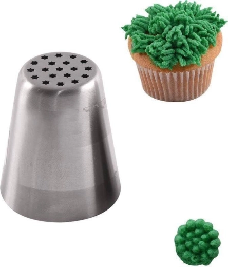 This Russian tip allows you to quickly and effectively create decorations resembling grass or fine hair. It’s perfect for piping buttercream, icing, and dough, and will please both beginners and professional pastry chefs. Thanks to its robust stainless steel construction, it is long‑lasting and safe for food contact.