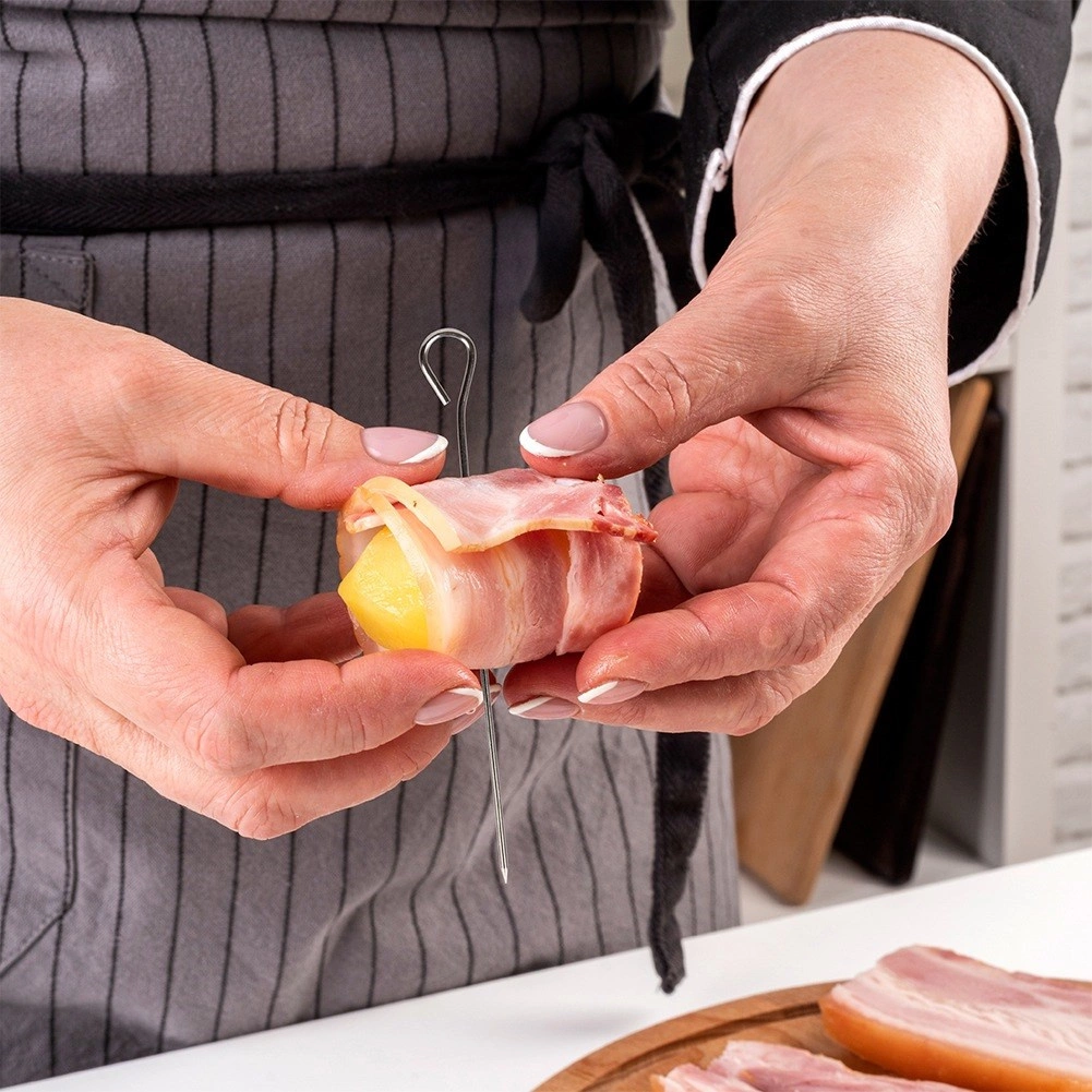 With these versatile stainless steel skewers, you can prepare roulades and rolls without using thread and replace single-use wooden toothpicks. The loop at the end makes inserting, removing, and handling easier while also preventing food from slipping.