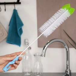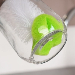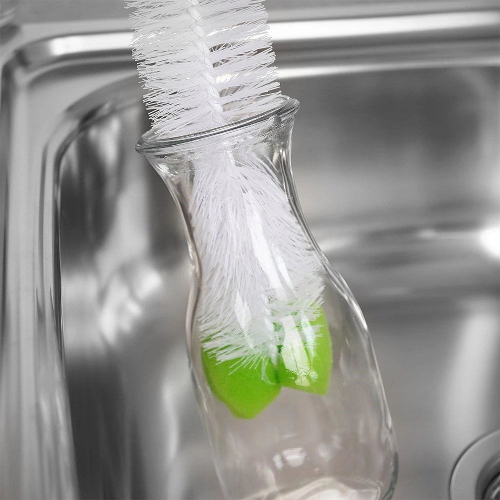 This long, narrow bottle brush is designed to easily reach narrow necks and deep containers. Dense bristles effectively remove deposits and dirt from the walls, while the soft sponge tip gently finishes the edges and bottom without scratching.