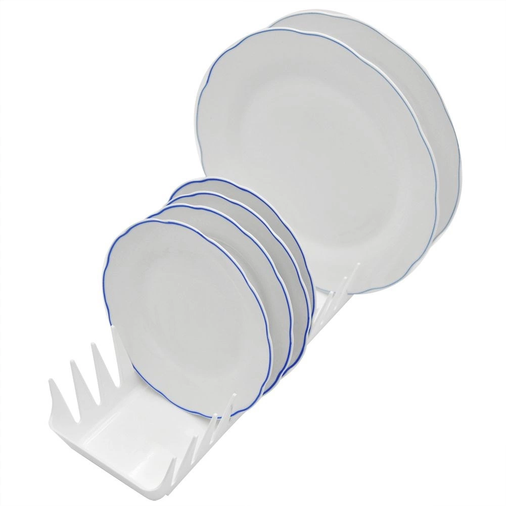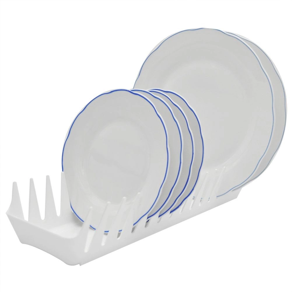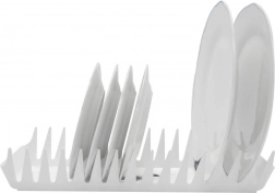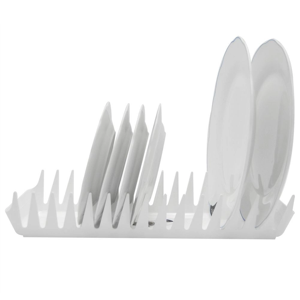 Keep your kitchen tidy and speed up dish drying. This white plastic plate rack offers capacity for up to 15 pieces and, thanks to vertical storage, ensures optimal air circulation. Use it on the kitchen counter, in a cabinet, or in a deep drawer.