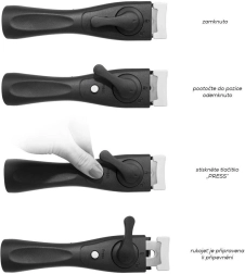A practical set of two frying pans with a detachable handle for space-saving storage and easy cooking. Durable aluminum body with a non-stick granite surface free from PFOA and PTFE ensures even heat distribution, cooking with minimal fat, and quick, energy-efficient frying on all types of stoves including induction. Suitable for the oven, dishwasher, and for storage in the fridge.