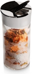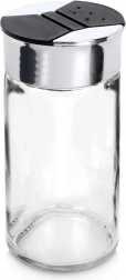 Practical 100 ml glass spice jar with a dual sifter and flip lid for easy dispensing of spices and herbs. Thanks to the transparent glass, you always see the contents, and the closable flaps ensure longer freshness and aroma. A stylish accessory for home kitchens and professional settings.