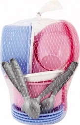 With this colorful set of children's dishware, kids can enjoy preparing imaginary delicacies anywhere. It is great for sand, garden, or beach, encouraging creativity and interactive play. The dishware is made from durable plastic designed for small hands.
