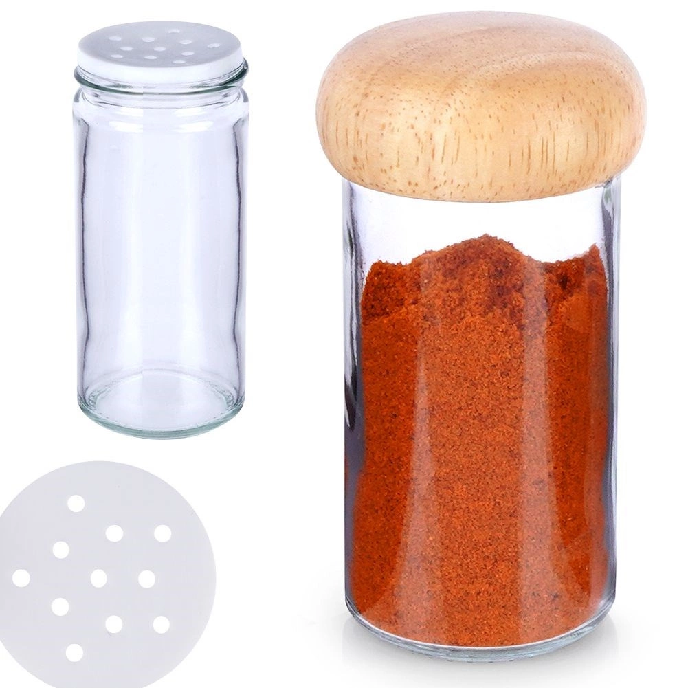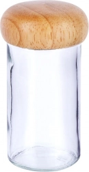 Clear glass for a perfect view of the contents and a wooden screw-on lid that helps protect spices from moisture and prolongs their freshness.