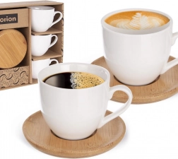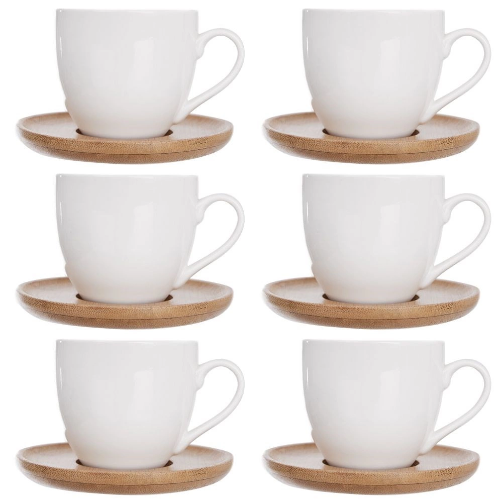 The set of 6 espresso cups with natural bamboo saucers is ideal for everyday use as well as festive serving. The glossy white porcelain and clean lines match any table setting. Each cup is lightweight, durable, and easy to hold thanks to the comfortable handle.