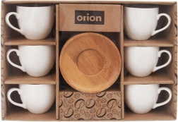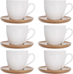 An elegant set of six porcelain cups with bamboo saucers for stylish espresso serving. Minimalist design, quality porcelain, and practical bamboo saucers that protect surfaces. The cups have a capacity of 100 ml, a comfortable ergonomic handle, and are dishwasher-safe (without saucers).