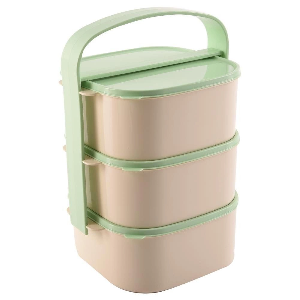 The handle firmly secures all three tiffin containers, reducing the risk of accidental opening and leakage during transport.