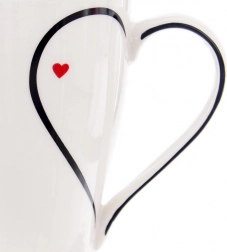 White porcelain is complemented by a subtle black line and a small red heart. The minimalist design suits any kitchen and makes a charming gift.