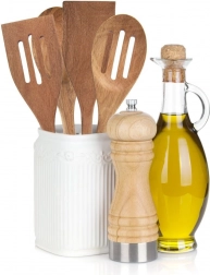 A practical kitchen spoon with slots made from natural acacia wood for easy straining and serving. With a length of 30 cm, it’s ideal for pots and pans, gentle on non-stick surfaces, moisture-resistant, and comfortable to hold. The white-lacquered section of the handle adds an elegant look, and the hole allows for hanging.