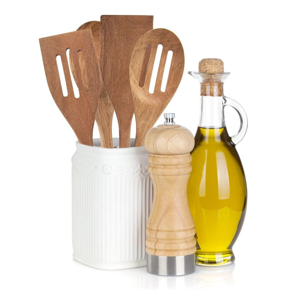 The wooden head with longitudinal slots won’t scratch Teflon, ceramic, or granite surfaces while enabling quick draining of liquids.