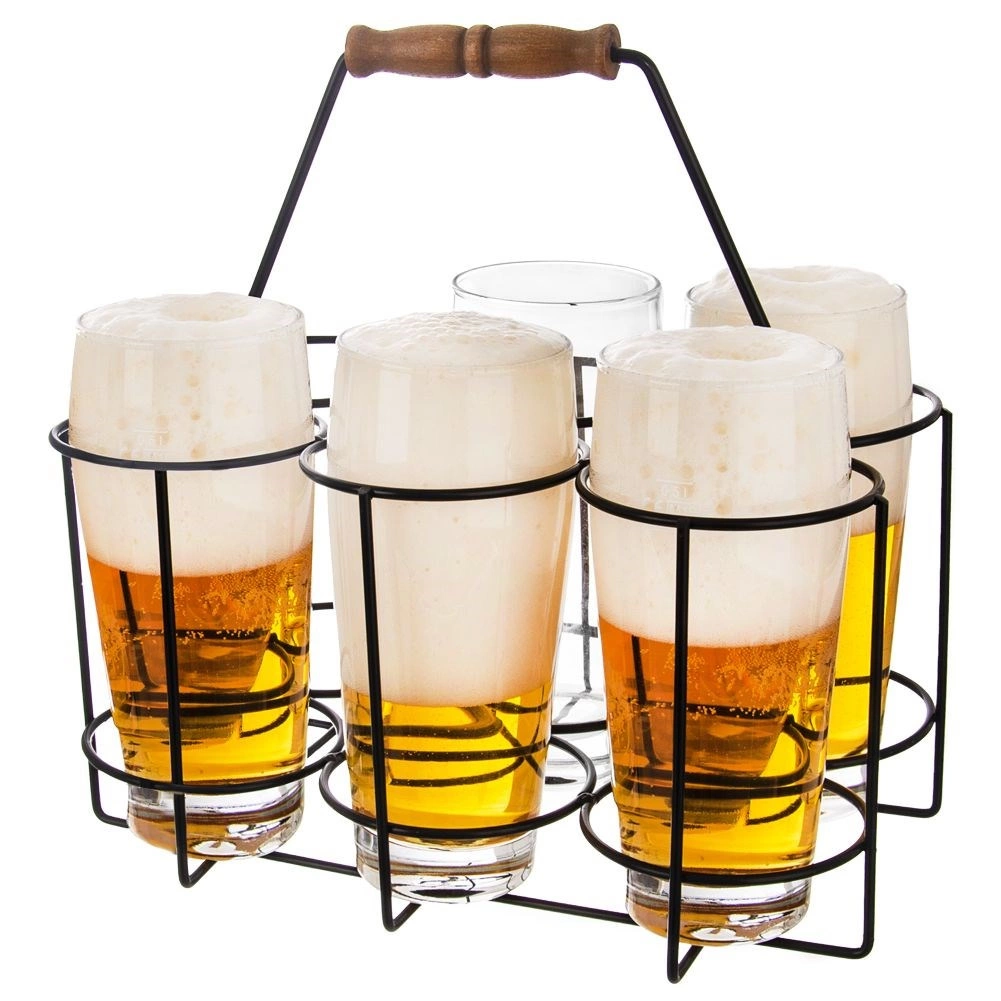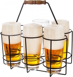 The minimalist black frame made of quality metal stands out for its longevity and easy care. The carrier fits most standard beer bottles and glasses and stores well thanks to its compact dimensions.