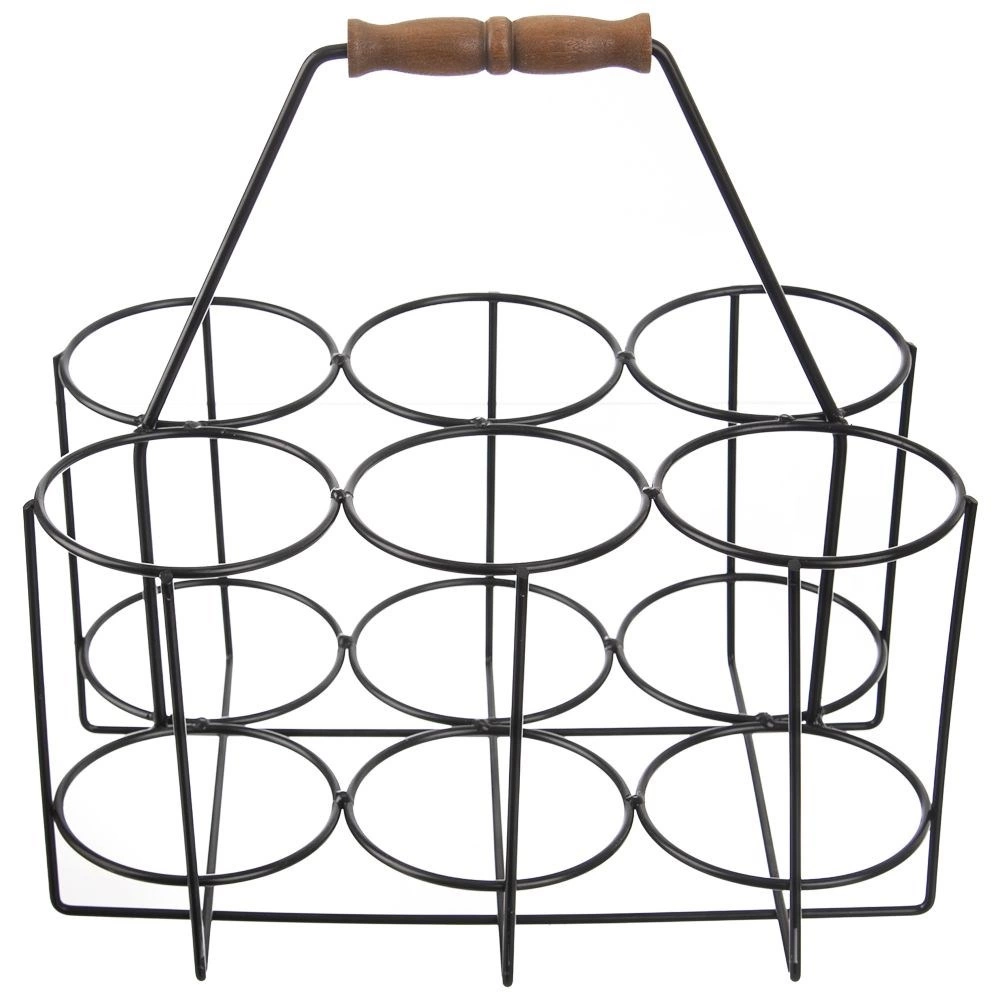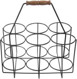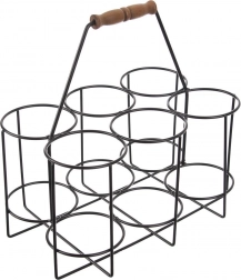 A durable metal caddy for carrying bottles or glasses offers safe organization and comfortable handling. Six separate ring holders keep containers firmly in place, while the wooden handle ensures a comfortable grip. A great solution for the home, garden, terrace, and serving drinks at barbecues.