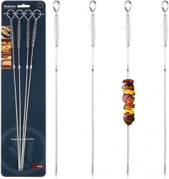 With this skewer set you can prepare perfectly cooked shashlik, kebabs, and vegetable skewers. They are made from durable stainless steel that withstands high temperatures and does not rust, so they will serve you for many seasons. The loop at the end makes handling, hanging, and turning over the grill easier.