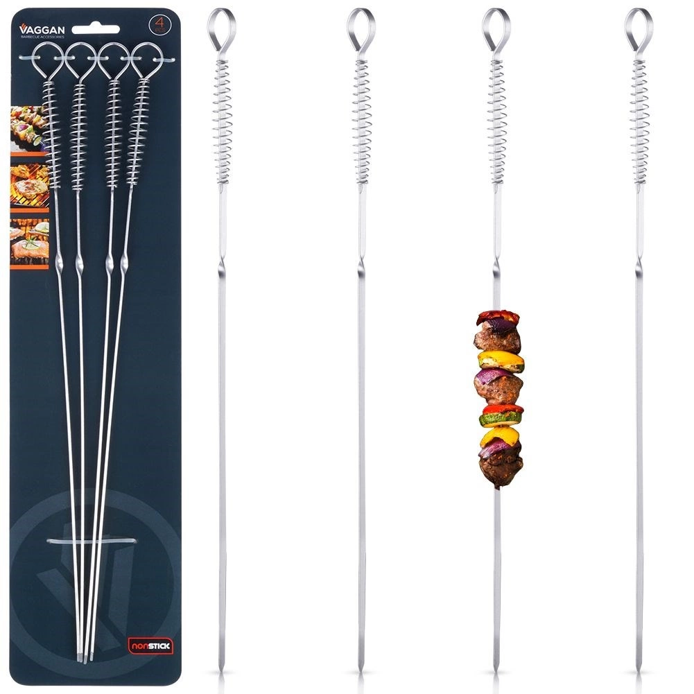 The skewers are made of high-quality stainless steel that is strong, rust-resistant, and withstands high temperatures during grilling and baking.