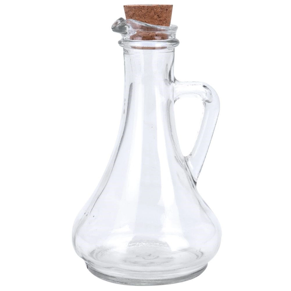This oil and vinegar bottle is made of durable, clear glass, allowing you to monitor quantity and quality. The tight cork stopper protects against spills and helps maintain flavor and aroma. With its ergonomic handle and shaped spout, you pour accurately without mess.