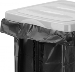 Professional stand for 60 L trash bags with a flip-up odor-control lid and a durable construction made of high-quality plastic. Thanks to the internal clips, the bag stays in place, and replacement is easy and quick. Ideal for home, workshop, food service, and industry, and can handle heavier waste as well.