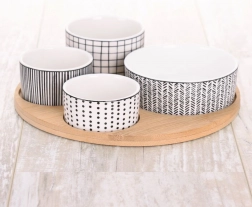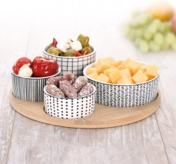 Porcelain snack bowls on a bamboo tray, 5-piece set