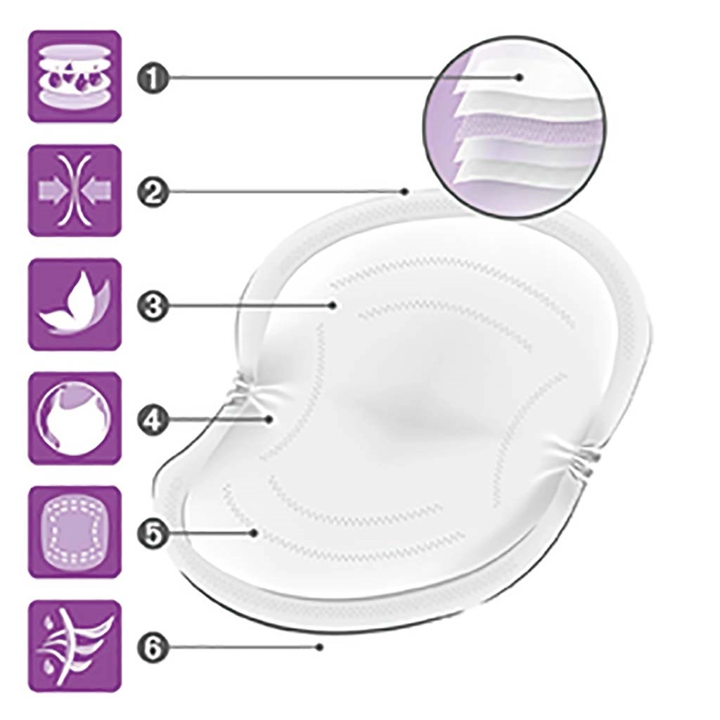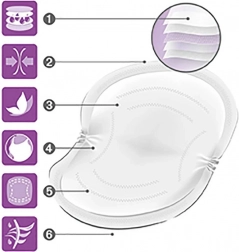 Ultra-absorbent nursing pads NUK High Performance provide breastfeeding moms with maximum protection and all-day and night comfort. Thanks to two absorbent layers and a double adhesive strip, they stay reliably in place, are silky soft, breathable, and anatomically shaped for a perfect fit. The package contains 30 individually, hygienically wrapped pads.