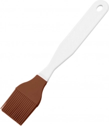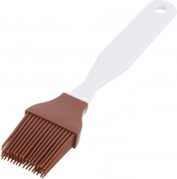 Practical 22 cm silicone kitchen brush for easy basting of meat, pastries, and molds. It has a comfortable handle with a hanging loop, is heat-resistant up to 220 °C, easy to clean, and is food-safe. The silicone bristles do not absorb odors or liquids and spread butter, oil, or marinade evenly.