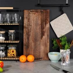 Two metal handles provide a secure grip and comfortable carrying from the kitchen straight to the table. The surface with pronounced wood grain and a distressed finish adds a rustic touch and modern style to your table setting.