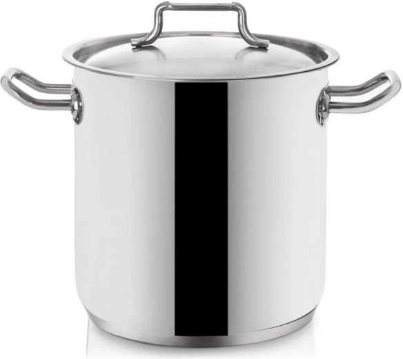 Premium stainless steel pot with a diameter of 24 cm and a capacity of 11 l with lid, ideal for everyday cooking and larger batches. Made of high-quality 18/10 stainless steel with a polished finish, it features a multilayer acute-thermal base for efficient and even heat distribution, is compatible with all hob types including induction, and can also be used in the oven.
