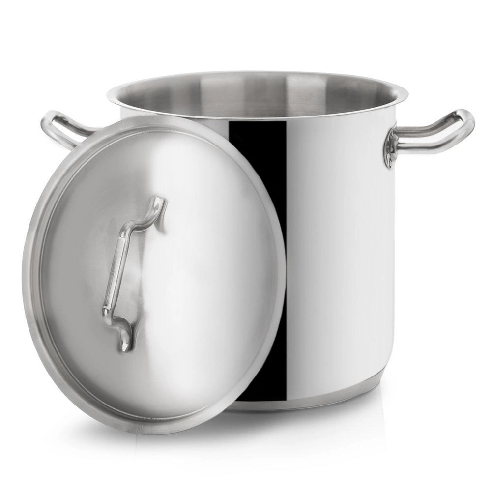 This heavy-duty stainless steel pot with lid is a great choice for soups, sauces, and braised dishes. High-quality 304 (18/10) steel ensures long service life, corrosion resistance, and easy maintenance. The polished exterior and interior provide an elegant look and make cleaning easier.
