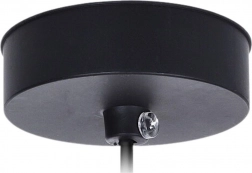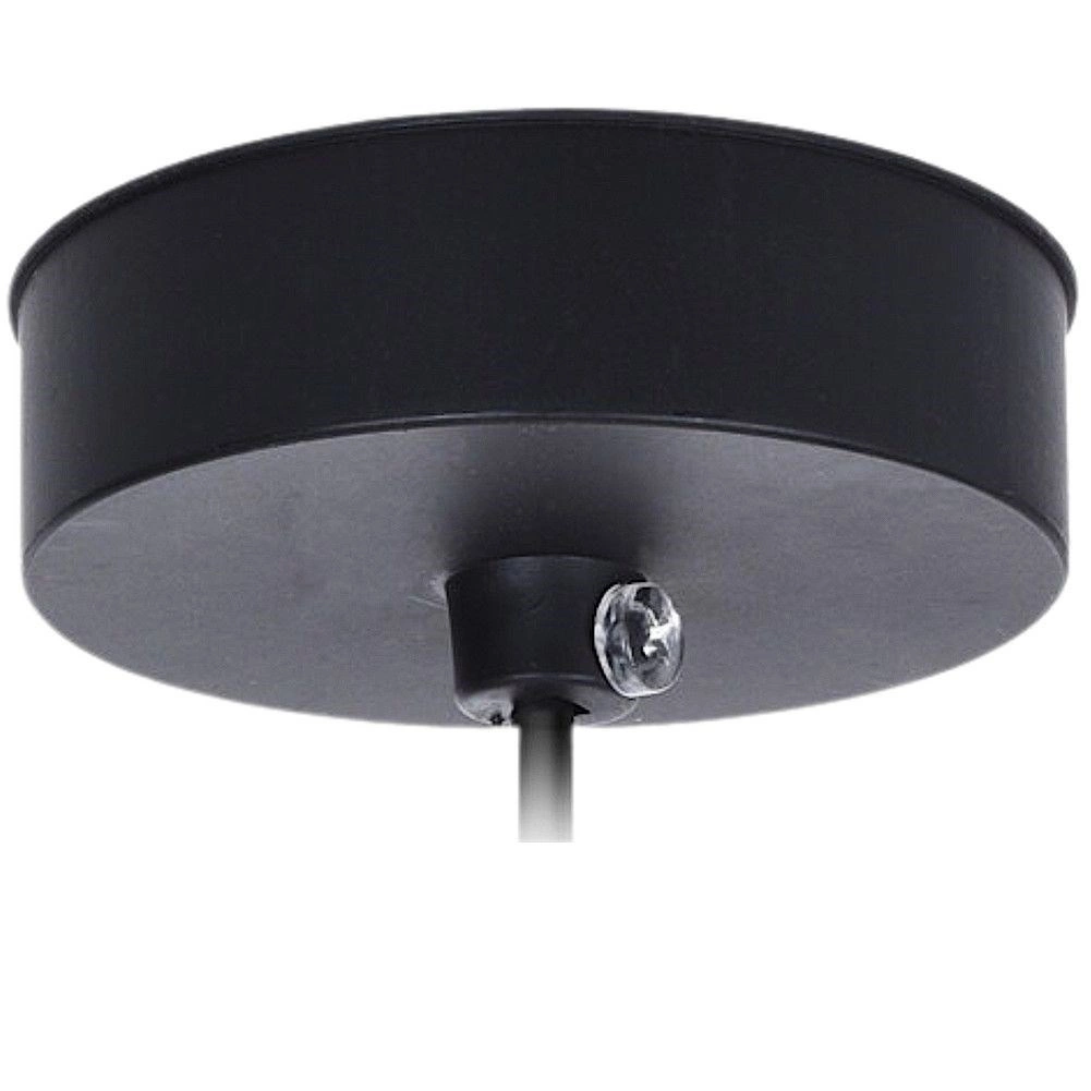 The round ceiling canopy in matte black neatly conceals wiring and mounting.
