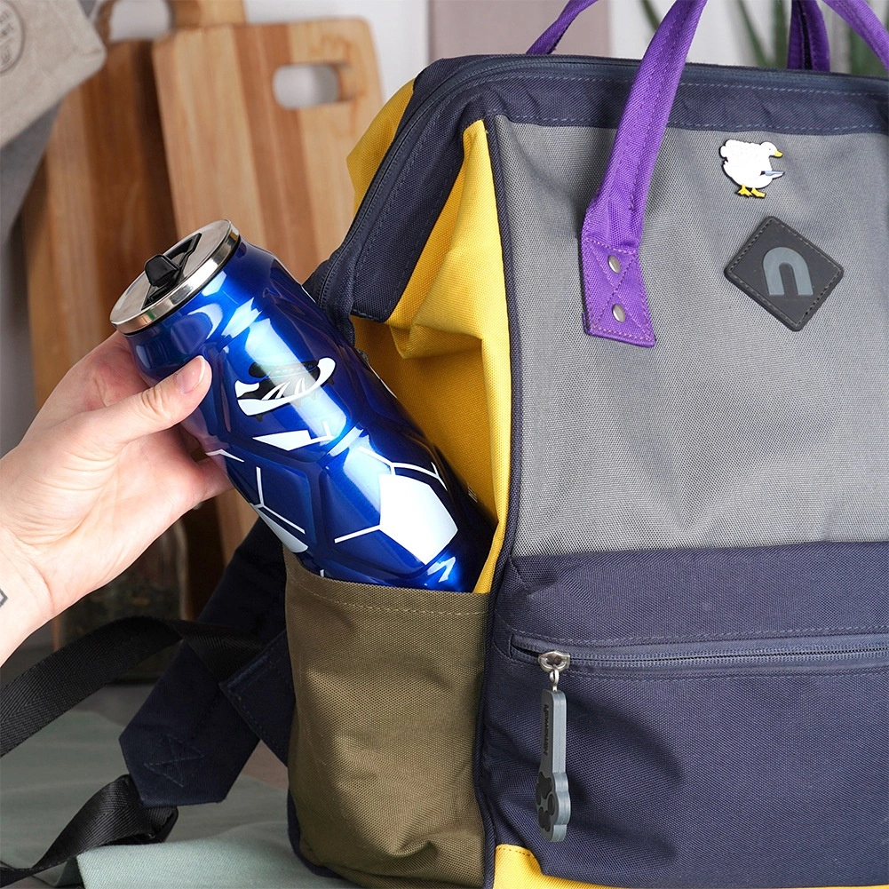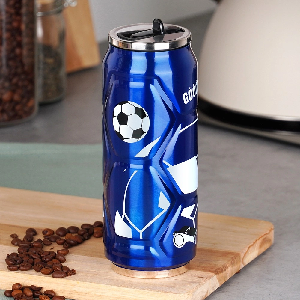 Enjoy your favorite drinks in a modern can-shaped thermal mug featuring a striking football motif on a blue background. High-quality stainless steel inside and out ensures durability and a pure taste without unwanted odors. Vacuum insulation keeps hot drinks warm for up to 12 hours and cold drinks cool for up to 8 hours—ideal for travel, the office, and sports.